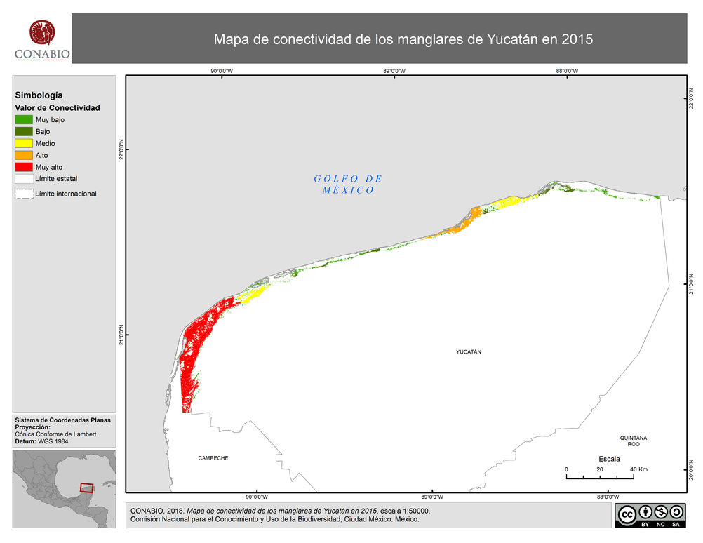 - CONABIO, (14/09/2018). 'Mapa de conectividad de los manglares de Yucatán en 2015', escala: 1:50000. edición: 1. Comisión Nacional para el Conocimiento y Uso de la Biodiversidad. Ciudad de México, México.