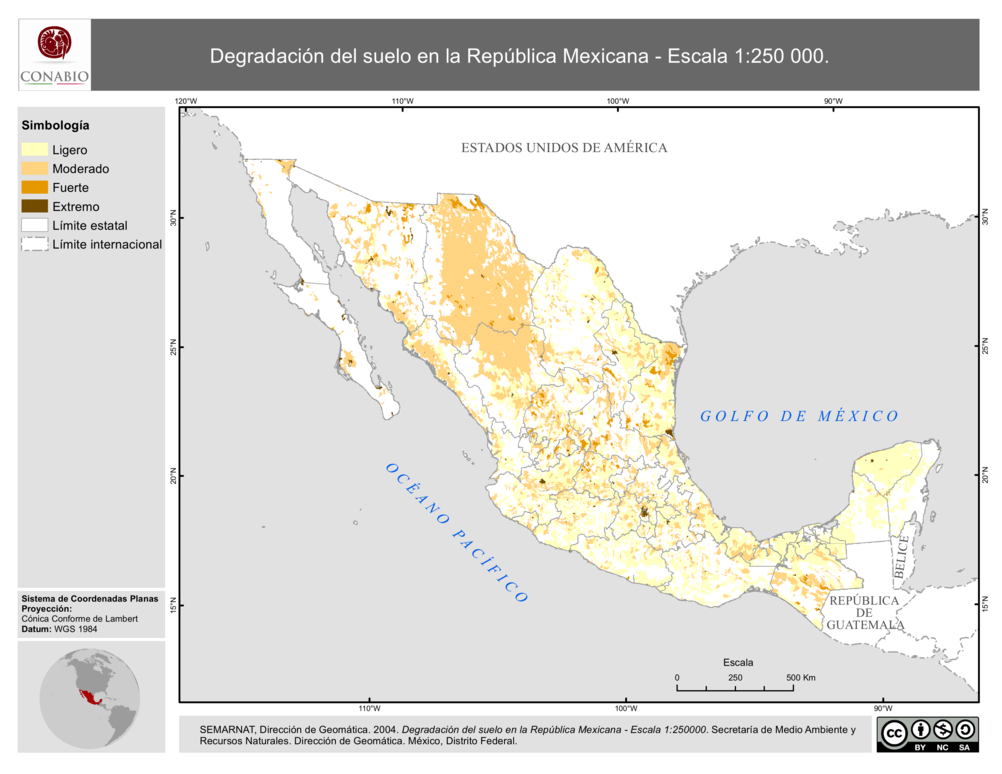 - SEMARNAT, Dirección de Geomática, (2004). 'Degradación del suelo en la República Mexicana - Escala 1:250 000.', escala: 1:250000. México, Distrito Federal.