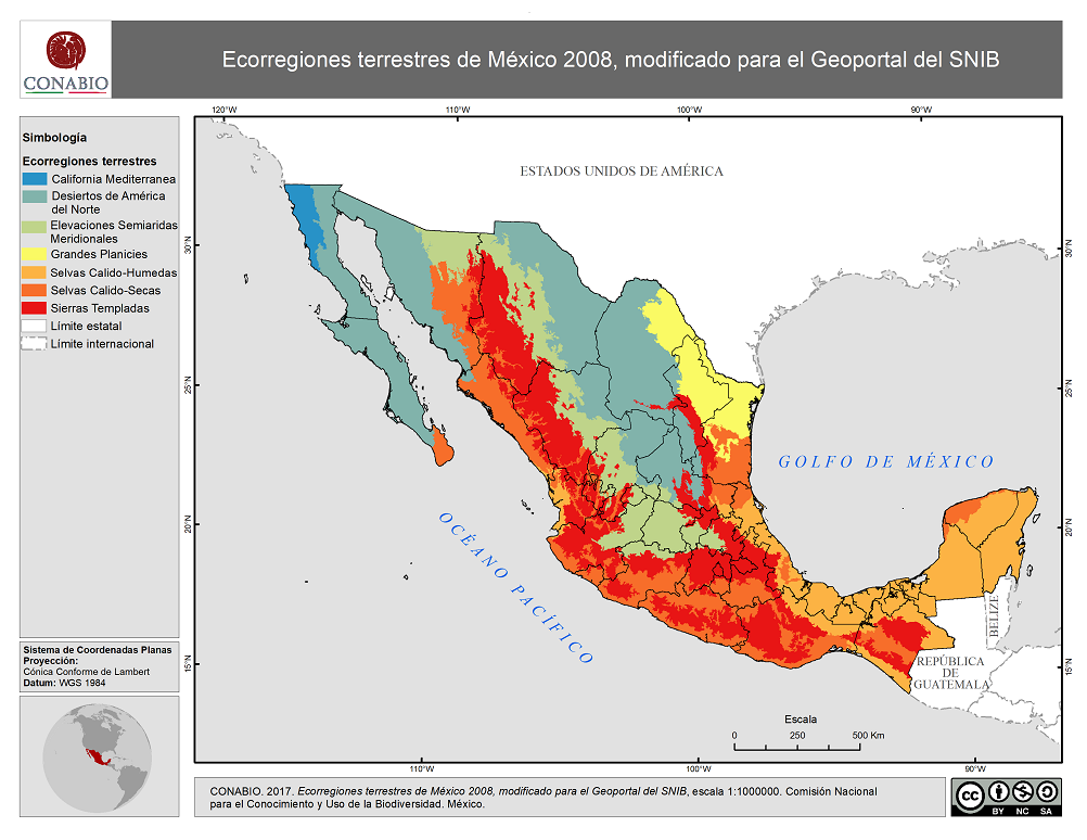 - Ecorregiones terrestres de México 2008, modificado para el geoportal del SNIB