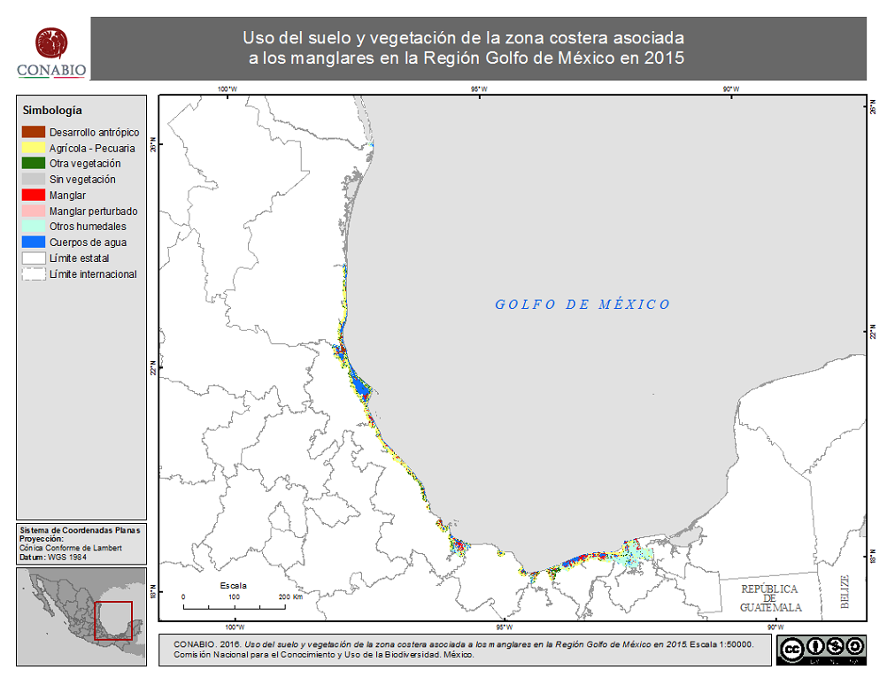 - CONABIO, (29/02/2016). 'Mapa de uso del suelo y vegetación de la zona costera asociada a los manglares, Región Golfo de México (2015).', escala: 1:50000. edición: 1. Comisión Nacional para el Conocimiento y Uso de la Biodiversidad. Sistema de Monitoreo de los Manglares de México (SMMM). Ciudad de México, México.
