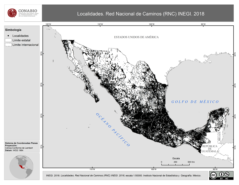 - Localidades. Red Nacional de Caminos (RNC) INEGI. 2018