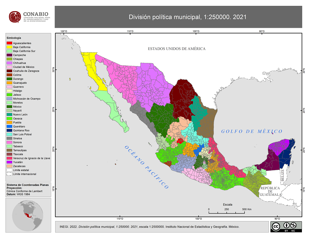 - 2021, División politíca municipal, Marco Geoestadístico, Municipios