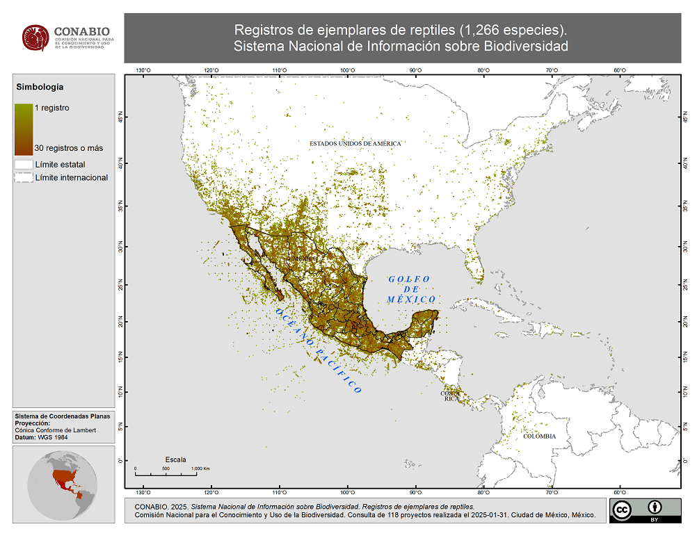 Flores-Villela O. 1998. Formación de una base de datos y elaboración de un atlas de la herpetofauna de México. Facultad de Ciencias. Universidad Nacional Autónoma de México. Bases de datos SNIB-CONABIO, proyecto A014. México, D. F. http://www.snib.mx/proyectos/cgi-bin/datos2.cgi?Letras=A&Numero=14
