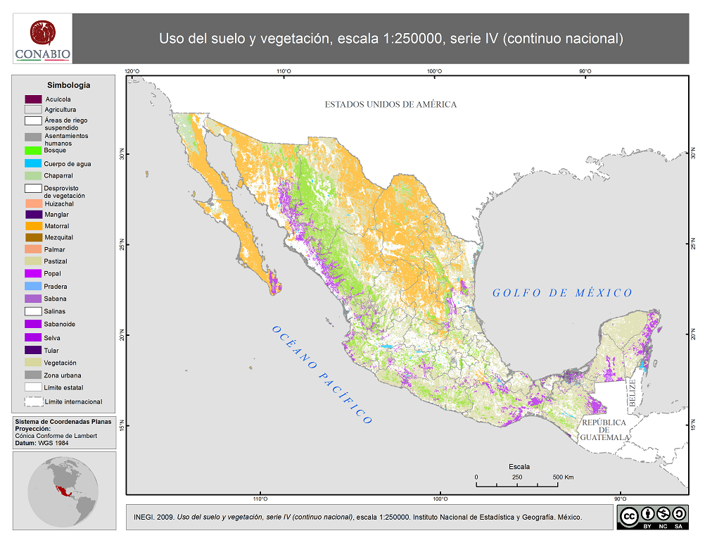 - Uso del suelo y vegetación, escala 1:250000, serie IV (continuo nacional)