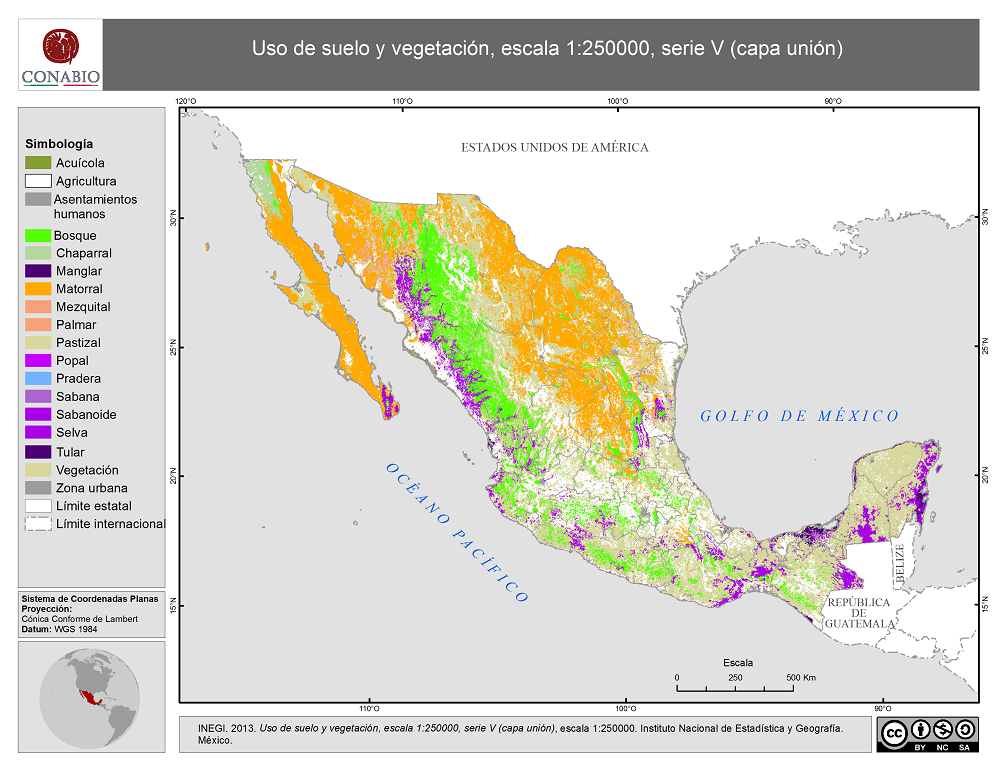 - Uso del suelo y vegetación, escala 1:250000, serie V (continuo nacional)